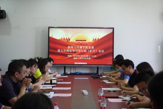 2022年7月6日下午两点,博彩平台网址大全 党委在JE202会议室组织召开党委第五次理论学习中心组(扩大)学习会,学院全体教职工通过线上和线下的方式参加会议,校党委委员、统战部部长郑锐华、校第三轮巡察第二组副组长财务处副处长董静,巡察组成员叶妮、绪道恒出席会议,会议由学院党委书记张梅主持。