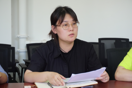 会议第四项,学生党支部书记净一丹领学习近平总书记在庆祝中国共青团成立一百周年大会上的重要讲话精神。她谈到作为一名高校教育工作者和辅导员,要深入领会习近平总书记对青年成长的教导,不断夯实大学生坚定听党话、跟党走的根基,引领广大青年谱写好入队、入团、入党的人生三部曲,在青春的赛道上跑出最好成绩。