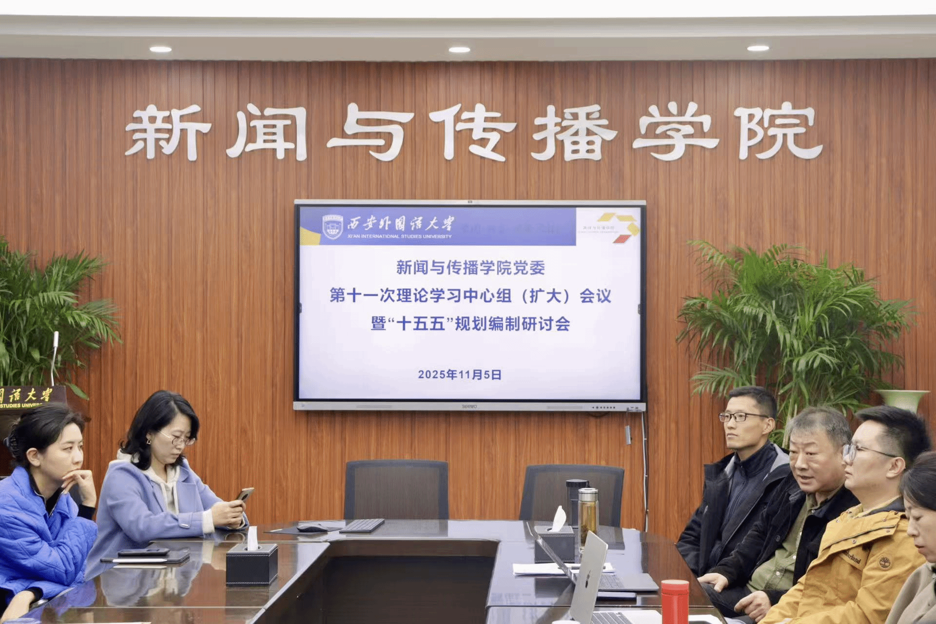 11月5日下午,博彩平台网址大全 在JI205会议室组织召开党委第十一次理论学习中心组(扩大)会议暨“十五五”规划编制研讨会。学院领导、党委委员、教研室主任、师生党支部书记、科室负责人、全体辅导员及教师代表参会,会议由学院党委书记张中旺主持。