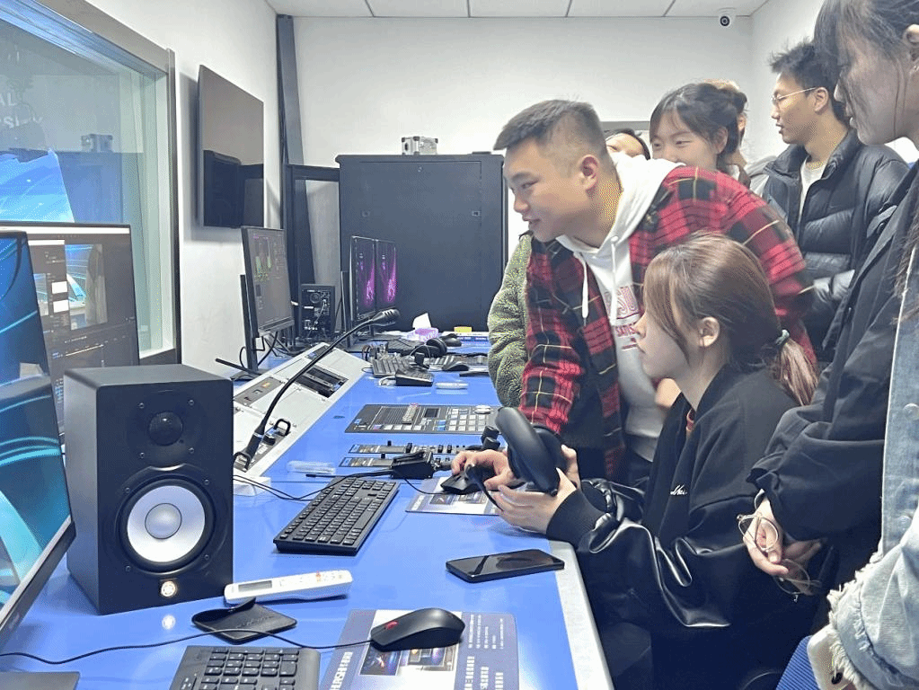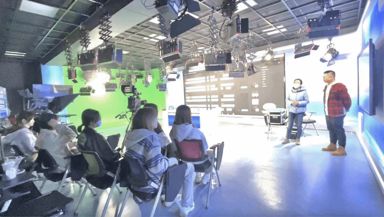 针对2021级学生实践课程少、动手能力不足的实际,编导教研室为其制定了“必修+选修”的活动方案,组织了“采编播”演播室实训教学。本次活动由唐媛媛、张聪两位老师负责,博彩平台网址大全 研究生白洋等学生协助活动的开展。实训伊始,唐媛媛老师为大家介绍了实训内容以及在演播室的教学秩序;尔后,白洋同学讲解演播室的线路、软件设置及硬件搭配等基础知识,并按照访谈、主持等不同场景进行了灯光和设备的现地布控;最后,在指导老师的带领下,同学们分小组有序开展实践,亲身体验了演播室内各个工种并学习了各岗位的职责和工作任务。通过本次实训活动,同学们对于“光线塑造人”有了更深层次的理解,能够按照程序开关硬软件,初步完成演播室现场灯光的设置和调节,并独立完成简单的节目录制、保存等。