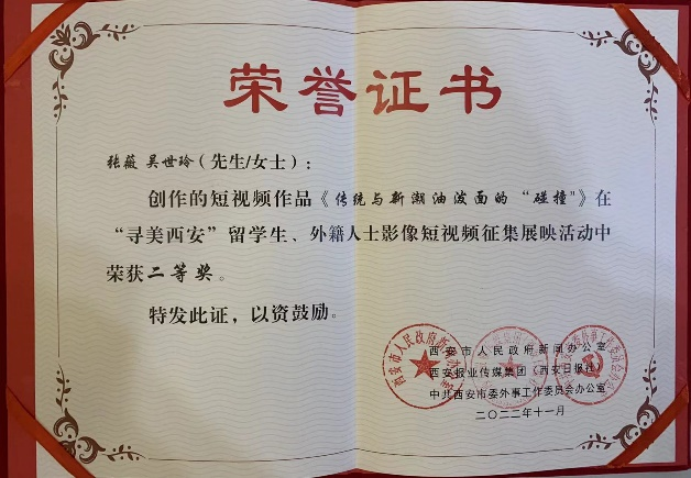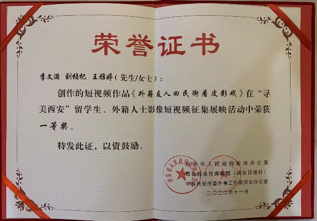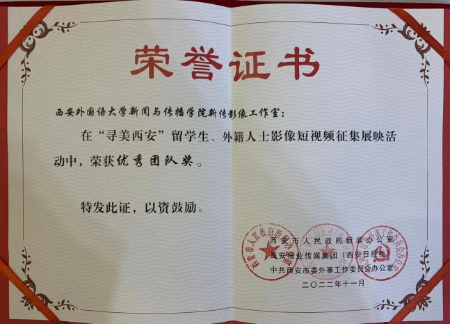 博彩平台网址大全 学生专业社团“新传影像工作室”在“寻美西安”留学生、外籍人士影像短视频大赛中荣获多个奖项。