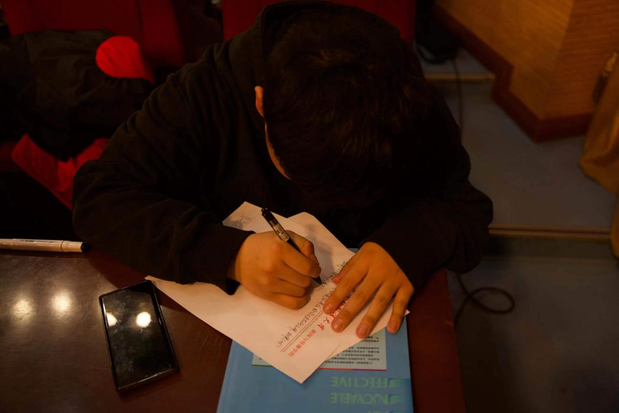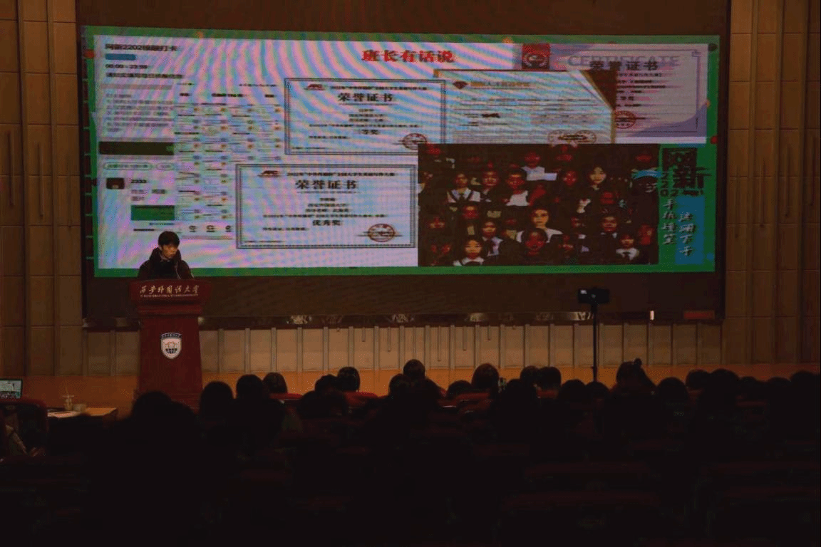 之后各班班长及学生代表依次通过幻灯片、视频的形式对各班上学期开展的活动、课堂学习、成绩状况进行了展示。随后,进行“写给四年后的自己”主题活动,所有同学拿出事先准备好的信纸为四年后的自己写了一封信,表达出对未来的期盼和目标,希望能够助力各位同学找准自我定位,对自己接下来大学生活有一个明确的目标和方向。